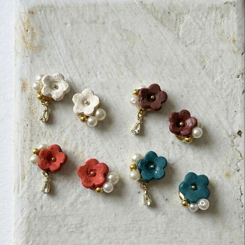 【各色1点】立命館守山高校コラボ【信楽焼】小花日和 陶器 ピアス イヤリング 伝統工芸 スタッド 小さめ